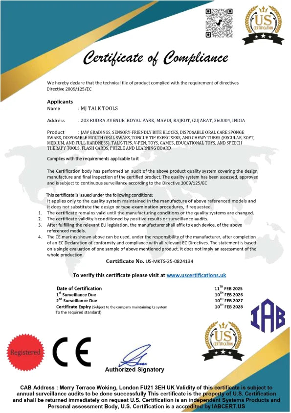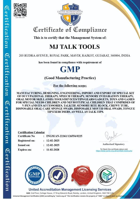 Bite Blocks | Chewy Tubes Green / Yellow / Red / Blue | Disposable Mauth Swabs | Tip Tongue Lateralization | Oro Moto Vibration Brash | Special Speech Therapy Kit.