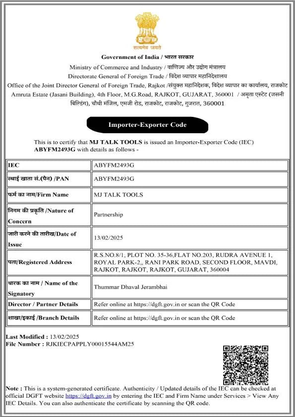 Our Certificate